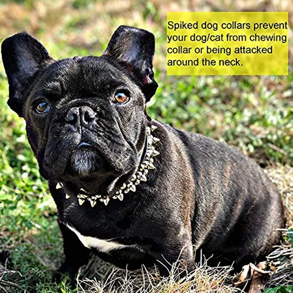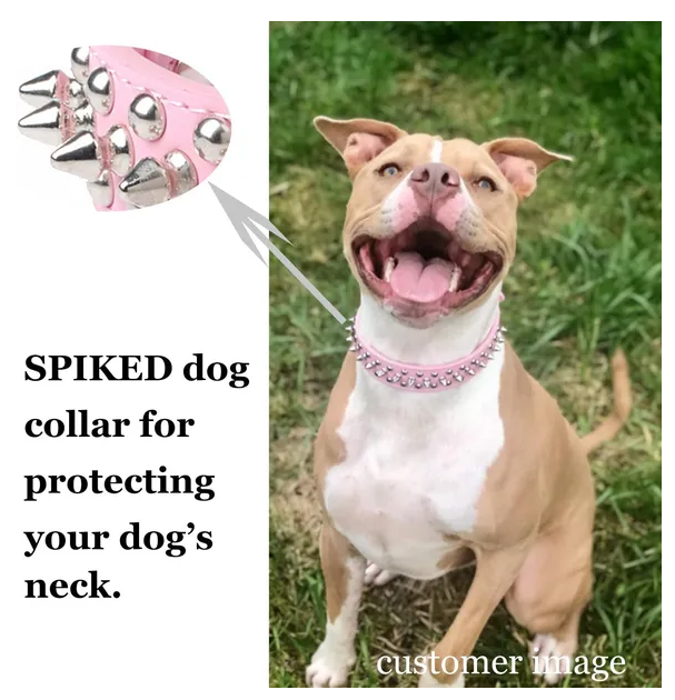 SPIKED DOG COLLARS The spikes are not overly sharp; so, it doesn't hurt your pet's skin, and the studs don't pull dogs hair out. Your animals cannot destroy the collar or be bitten around the neck because of the spikes giving them added protection during play time!