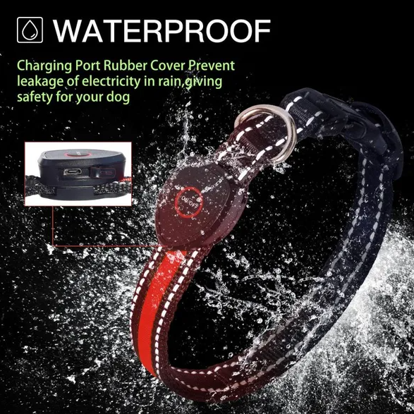 * The reflective strips of the light up dog collars design on both sides can protect dogs even the light of LED dog collar rechargeable is off, and the light up dog collars help vehicles see your dog well.