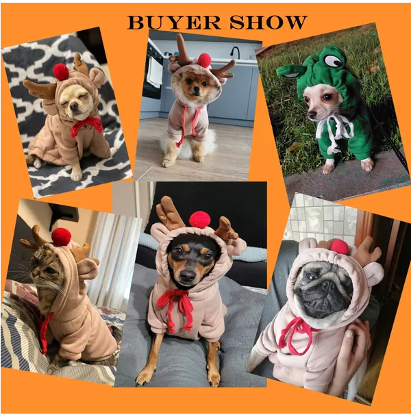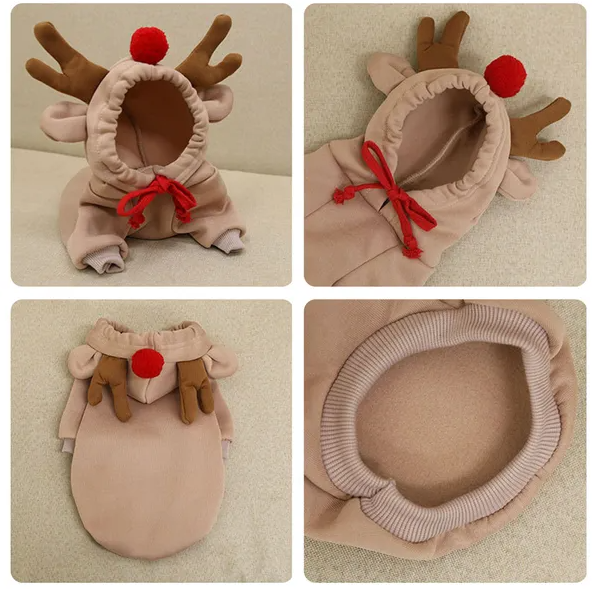 Christmas Dog Winter Warm Clothing Cute Plush Coat Hoodies Pet Costume Jacket For Puppy Cat French Bulldog Chihuahua Small Dog Clothing