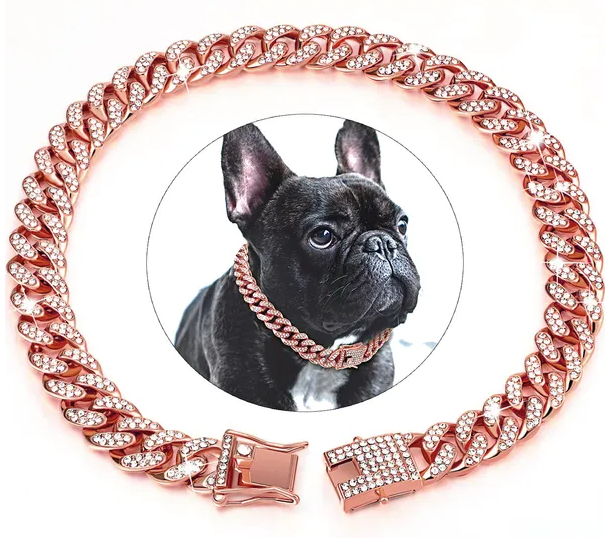 Dog Chain Crystal Artificial Diamondoid Dog Collar Walking Metal Chain Collar With Secure Buckle Dog Chain Crystal Artificial Diamondoid Dog Collar Walking Metal Chain Collar With Secure Buckle
