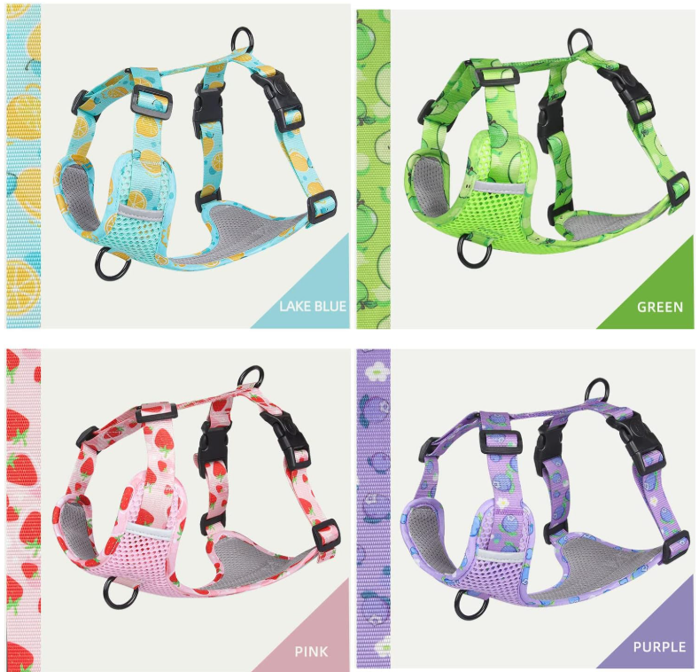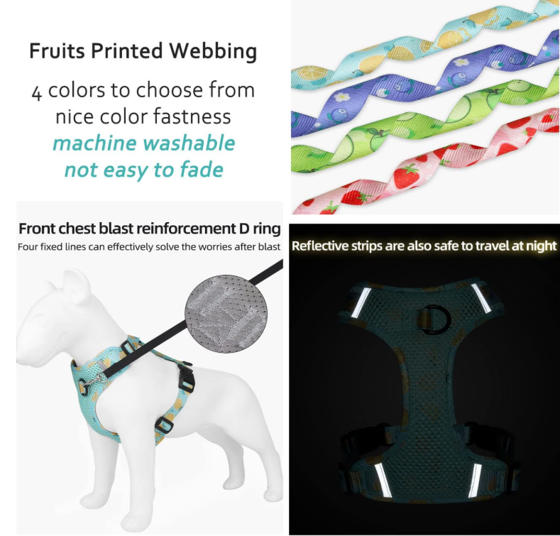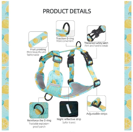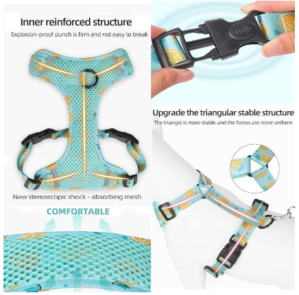 EASY TO PUT ON AND TAKE OFF: This soft mesh dog harness is easy to put on and take off with its 2 quick-release buckles. Just slide the harness over dog's head; buckle it up; adjust the straps!