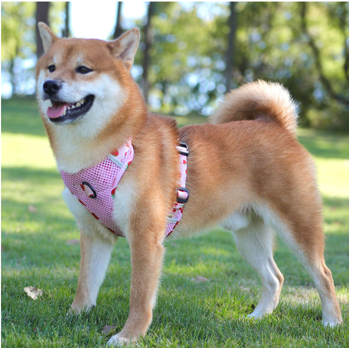 EASY TO PUT ON AND TAKE OFF: This soft mesh dog harness is easy to put on and take off with its 2 quick-release buckles. Just slide the harness over dog's head; buckle it up; adjust the straps!