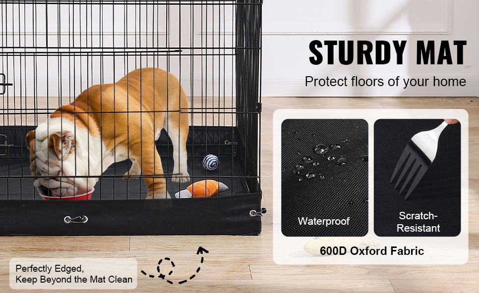 Waterproof and Durable Ground Mat: Made of 600D heavy-duty Oxford fabric, the ground mat of our exercise pen is waterproof, washable, and tear-resistant, protecting your floors from damage.