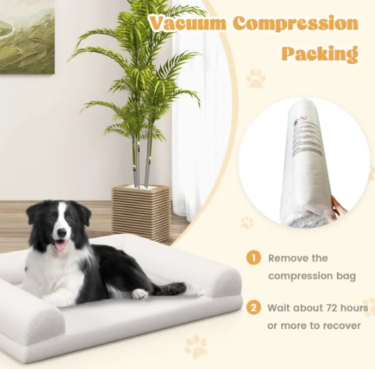 • Vacuum Compression Packing: The soft dog bed adopts vacuum compression packing and it is easy to set up. All you need to do is to remove the compression pad and wait about 72 hours or more to recover. The orthopedic dog bed measures 36" x 27" x 7" (L x W x H) and the sleeping area measures 24" x 21" (L x W), which is suitable for medium and small dogs.