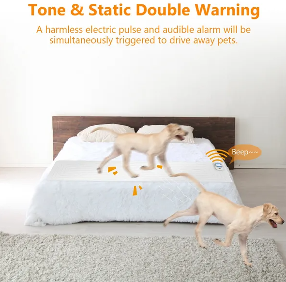 Great Value To Protect Home: This sensitive pet training mat can keep dogs and cats away from countertop; couch; sofa; bed; table; baby activity area and other areas that you want to keep pet-free. Once detecting cats; dogs; or other similar sized pets; a harmless and low-power electronic pulse will run across the surface of the mat to send away pets safely.