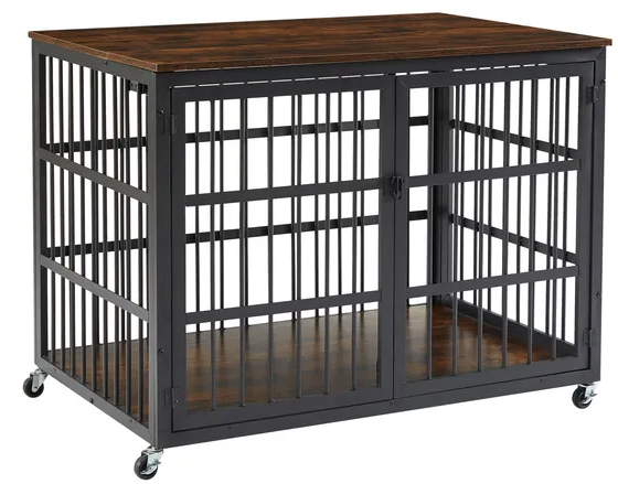 Home > Furniture style dog crate wrought iron frame door with side openings, Grey, 43.3''W x 29.9''D x 33.5''H.