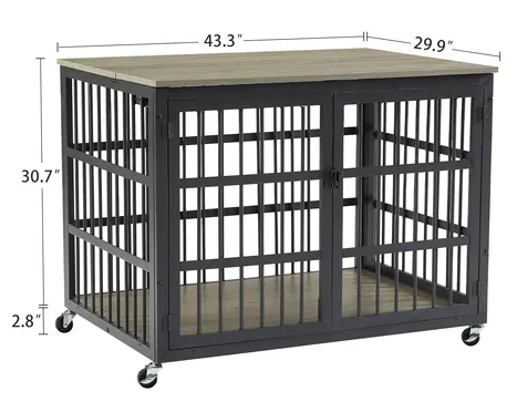 Home > Furniture style dog crate wrought iron frame door with side openings, Grey, 43.3''W x 29.9''D x 33.5''H.
