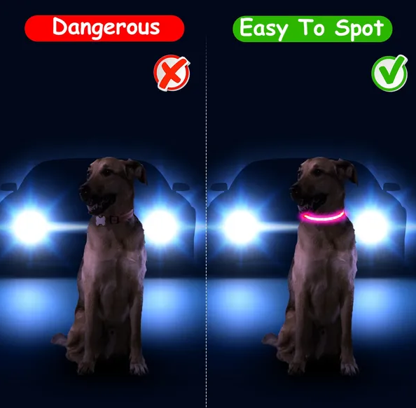 Adjustable Dog Collar: These LED dog collar’ length are adjustable, suitable for small, medium-sized and large dogs. Adjustable Collar