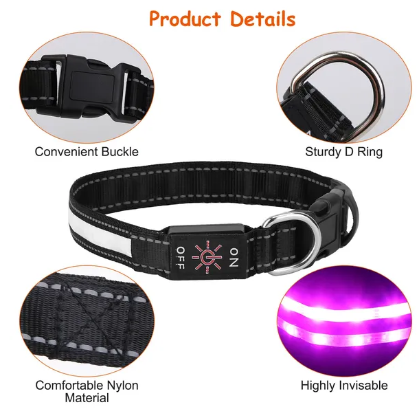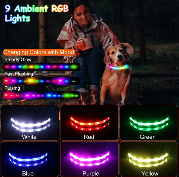 Light Up Dog Collar LED Dog Collar Safety Night Glowing Dog Collar with 9 Light Colors IPX7 Waterproof USB Rechargeable