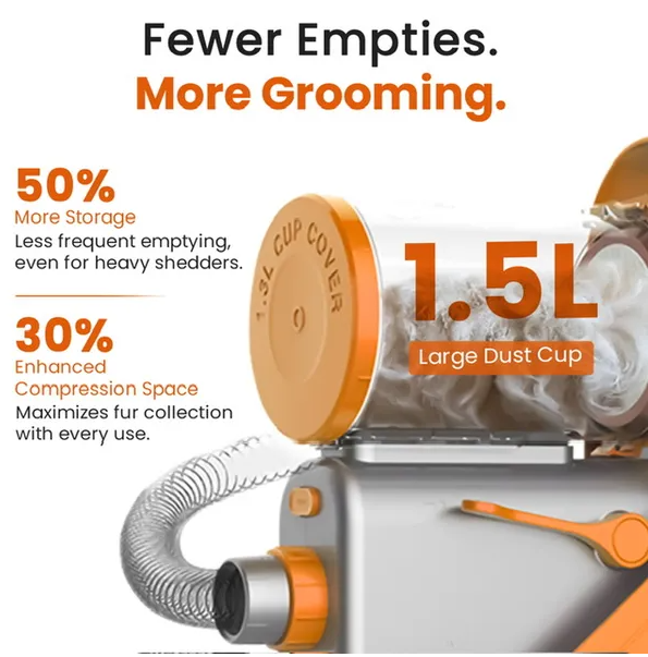 With a built-in hair dryer and expandable dust bin, this grooming vacuum kit combines professional-level tools with home convenience. Say goodbye to scattered pet hair and hello to a cleaner, healthier coat.
