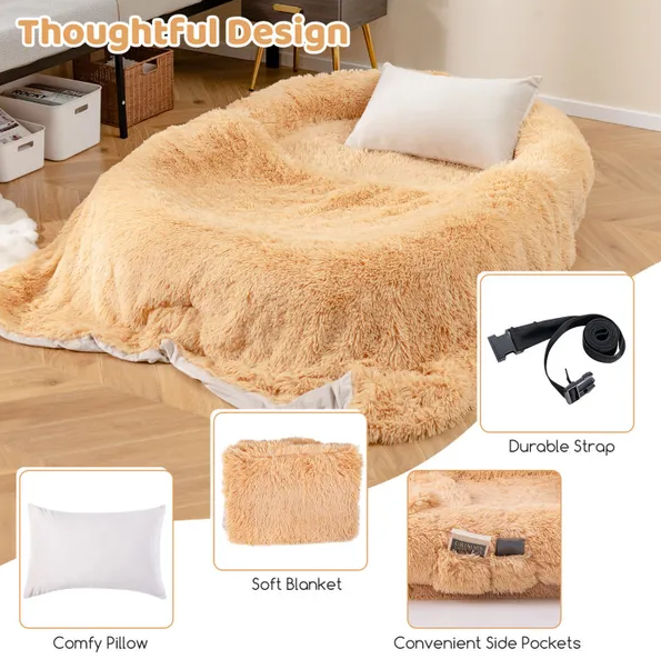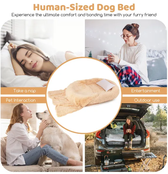 Washable Fluffy Human Dog Bed with Soft Blanket and Plump Pillow