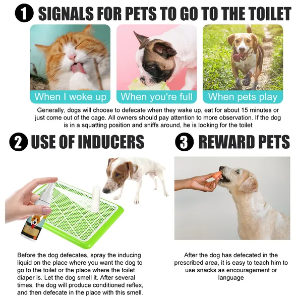 The way to use it is very simple: before the dog defecates, spray the induction solution on the place where you want the dog to go to the toilet or the place where the diaper is wet, let the dog smell it, after a few times, the dog will have a conditioned reflex, and then defecate in the place where there is this smell. You can stop your pet from urinating everywhere.
